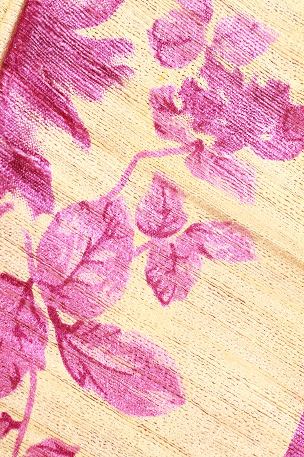 Champagne beige with a dual-tone magenta-pink border and floral palla.