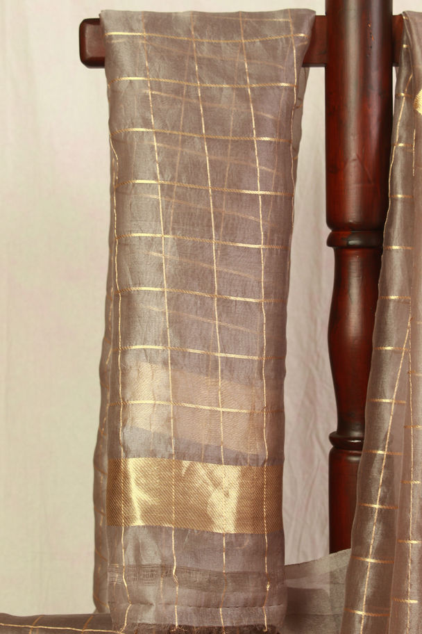 Nakshatra Taupe Grey Kora Silk Saree with Gold Zari Detailing