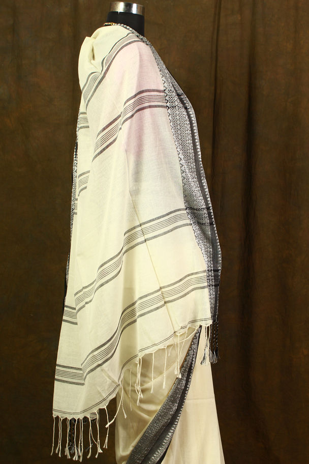 Naaviri White Khadi Jamdani Saree