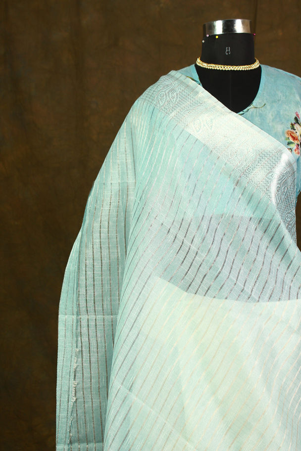 Icy pastel blue with silver zari